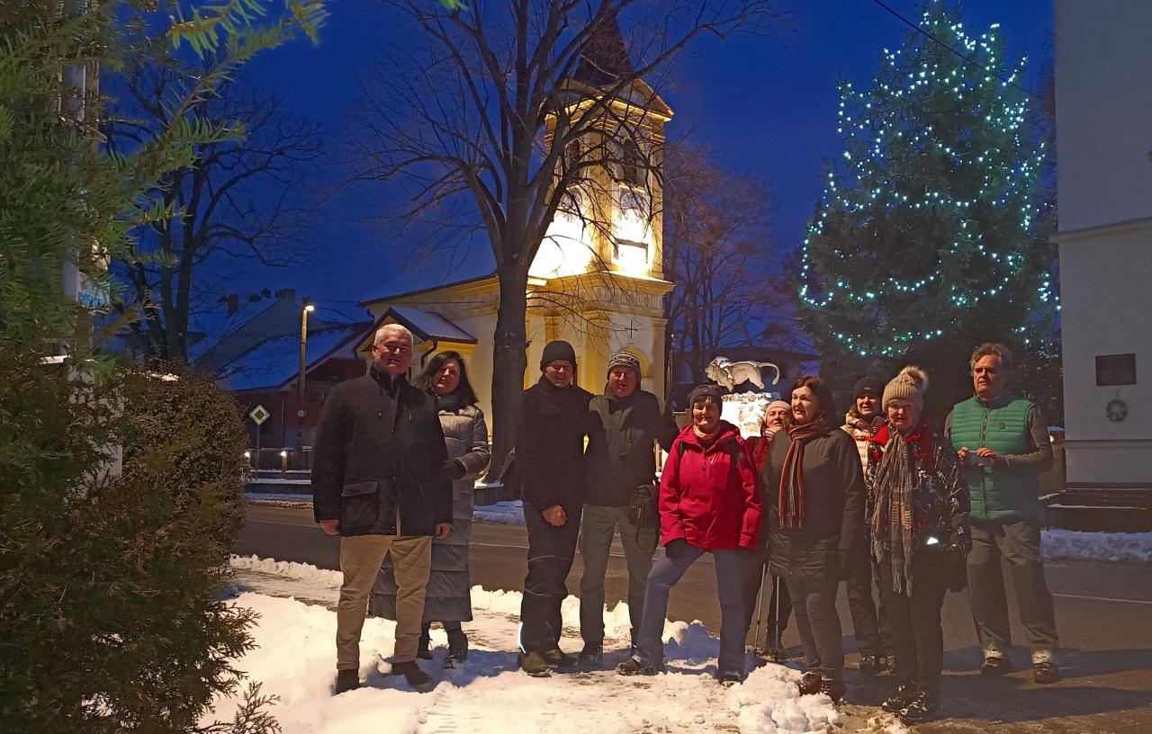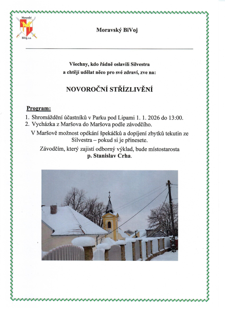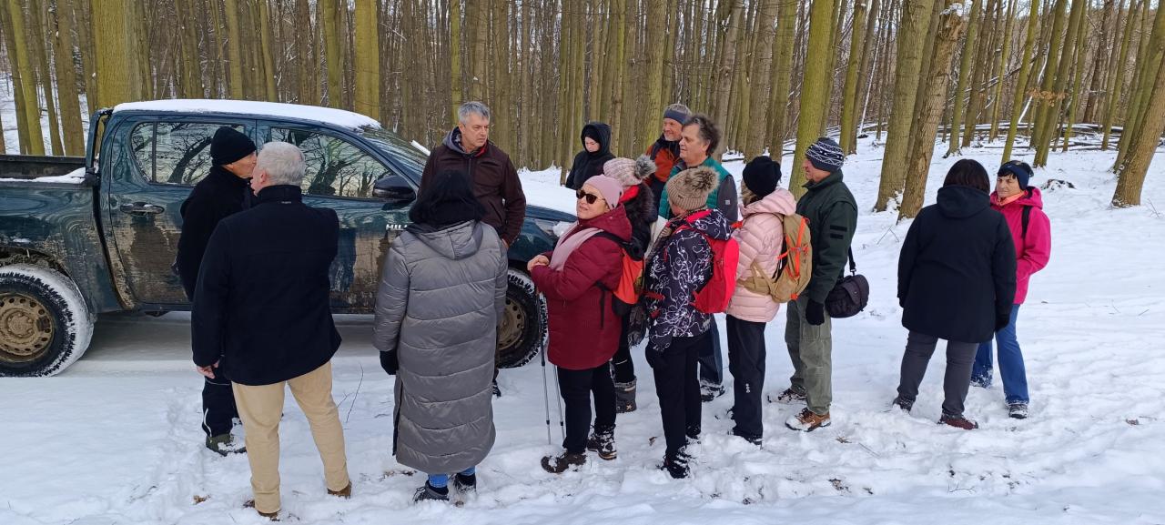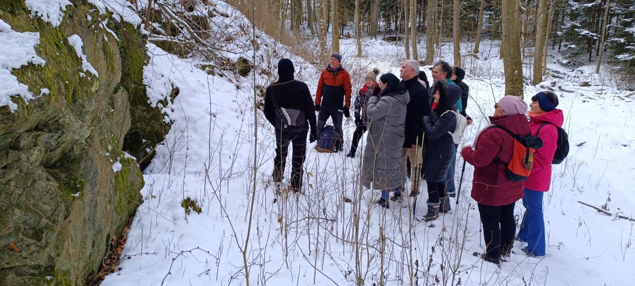 Vycházka na Nový rok vedená místostarostou p. Stanislavem Crhou. Zavedl nás až do pralesa krásnou zasněženou a prosluněnou krajinou. Došli jsme za svitu měsíce (12 km). Střízlivění jsme pojali jako ochutnávku pálenek proložených sportovním výkonem. Díky za krásnou akci.